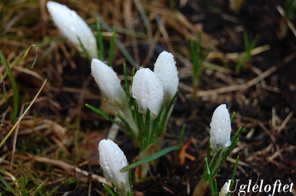 På 10 dager har hagen gått fra vinter til vår. Fra snø over store deler av tomta til tørt og fint, med maur og blomster i bedene. Disse ble plantet i fjor på det stedet som varmen fra huset gjør at først blir snøfritt. Helt inntil husveggen på skyggesiden står vinnerne i konkurransen om å blomstre først i hagen i år, hårfint forran krokusen som kom på andreplass.