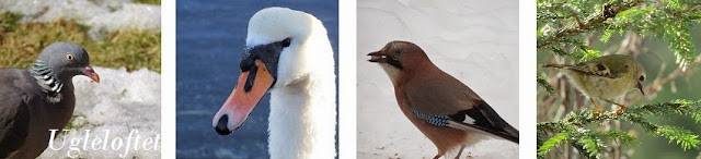 | 1)Ringdue 2)Knoppsvane 3)Nøtteskrike 4)Fuglekonge |