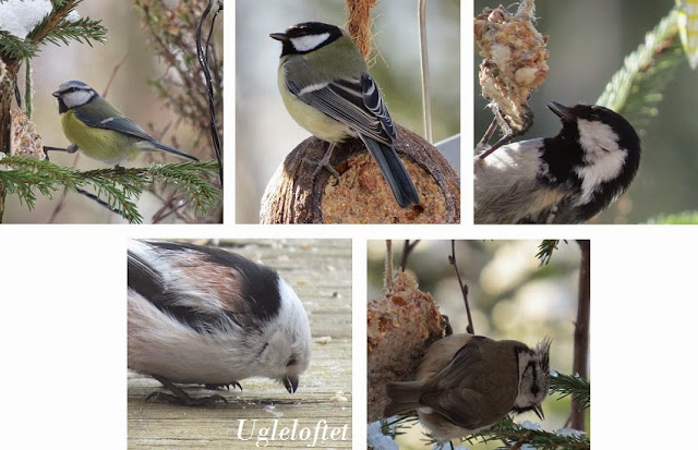 | 1)Blåmeis 2)Kjøttmeis 3)Svartmeis 4)Stjertmeis 5)Toppmeis |