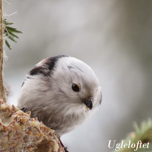 Senere har den kommet tilbake, og da har den hatt med seg hele slekta. Mengder av denne søte lille ballen med hale henger rundt i fugletreet og fråtser i undulatfrø. En av mine absolutte favoritter på foringsplassen. De er veldig sky, og forsvinner bare de aner en bevegelse innenfor vinduet. Når de først er borte kommer de ikke tilbake med det første, så det gjelder å nyte synet og stå helt stille.Stjertmeis (Aegithalos caudatus)